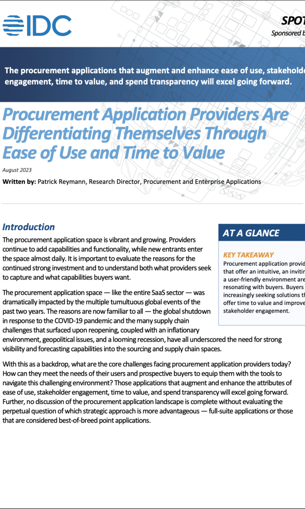 IDC Spotlight – Procurement Application Providers Are Differentiating Themselves Through Ease of Use and Time to ValueDavid@sandcastle-web.comOctober 15, 2024IDC Spotlight Procurement Application Providers Are Differentiating Themselves Through Ease of Use and Time to ... Read More