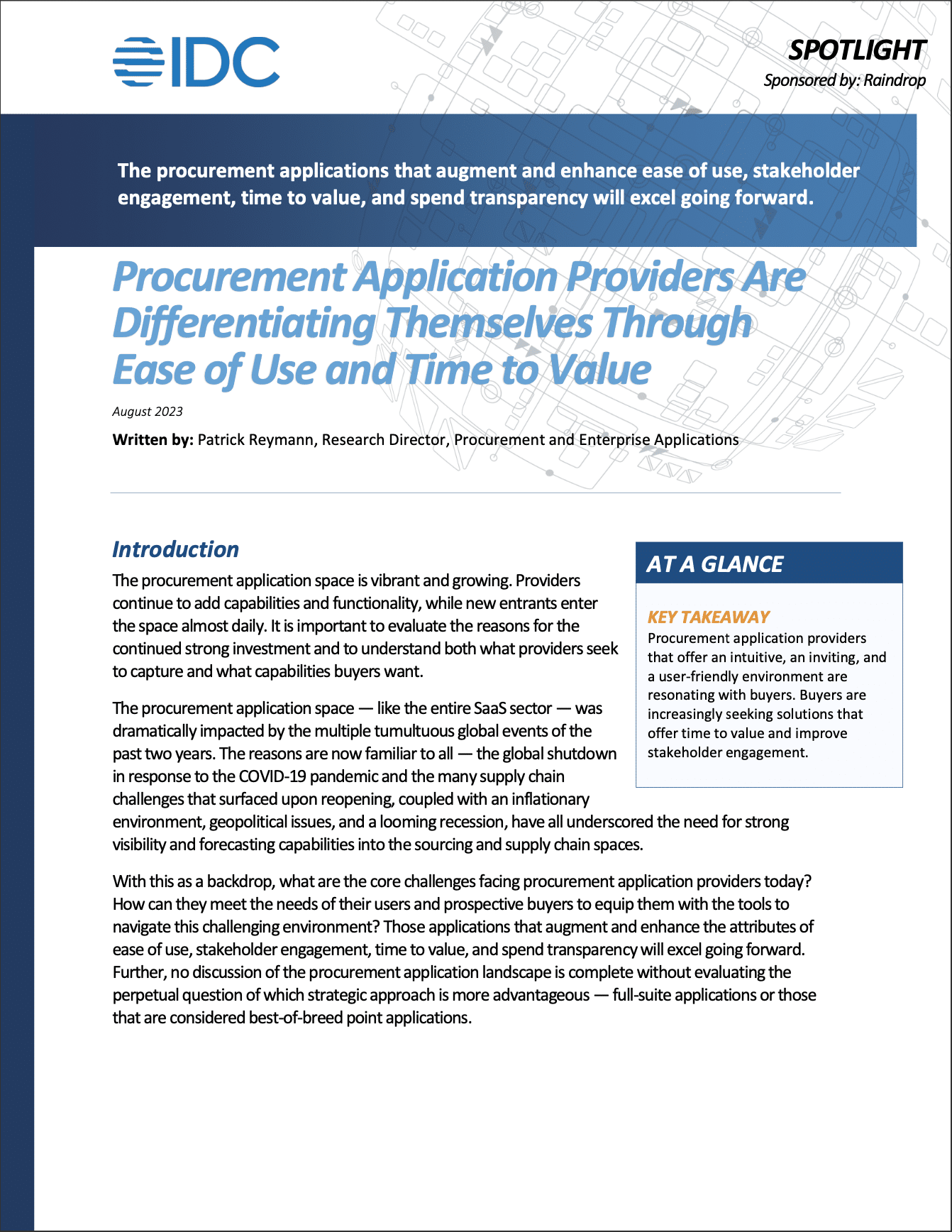 IDC Spotlight – Procurement Application Providers Are Differentiating Themselves Through Ease of Use and Time to Value