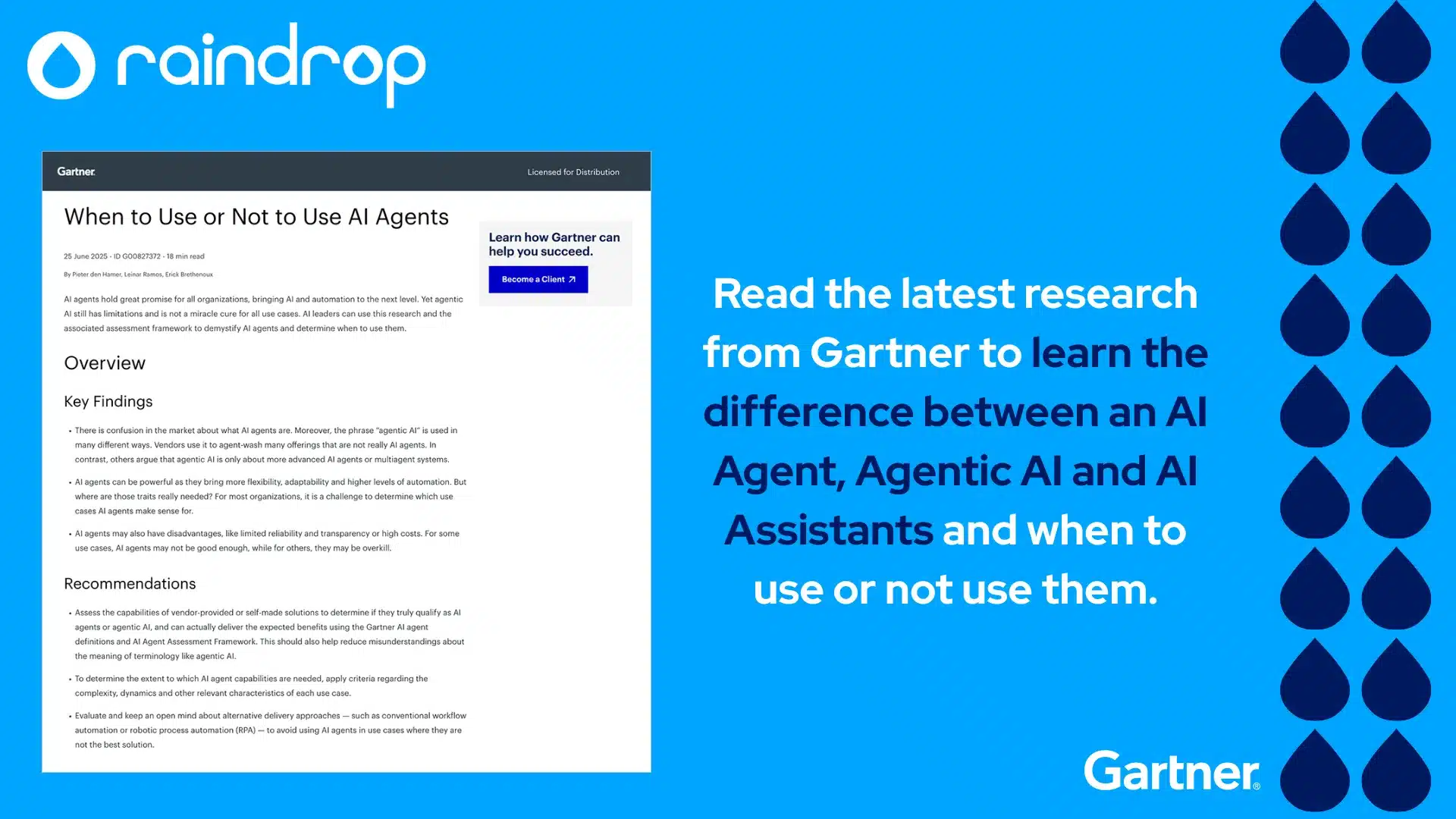 Articles, RecognitionGartner® Research: When to Use or Not to Use AI Agents With all the buzz around agentic and AI agents ...