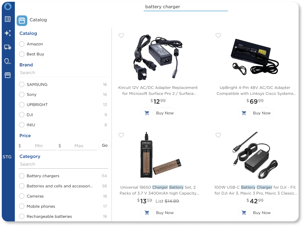 Search across internal catalogs, punchouts, and supplier sites in one place. No more toggling between tabs or tools.