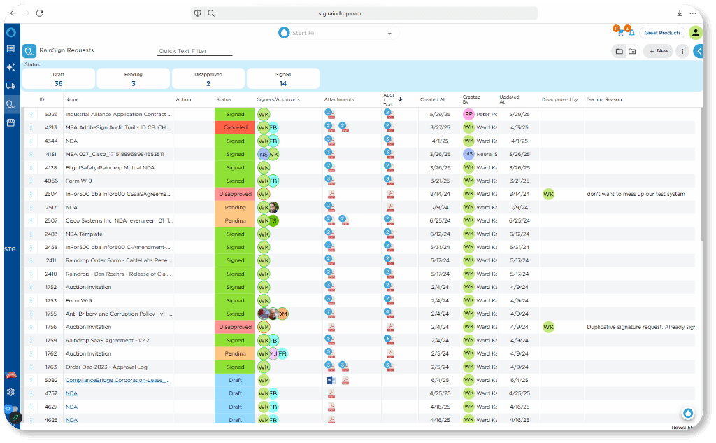 RainSign by Raindrop streamlines the entire contract signature process—from initiation to execution—within a single, secure platform. Designed for seamless integration across sourcing, procurement, and legal workflows, RainSign accelerates approvals, reduces costs, and enhances compliance.