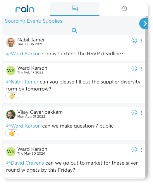 Suppliers can access a dedicated portal to submit responses, ask clarifying questions, and receive real-time updates. Raindrop ensures transparency and fairness while simplifying supplier onboarding and communication.