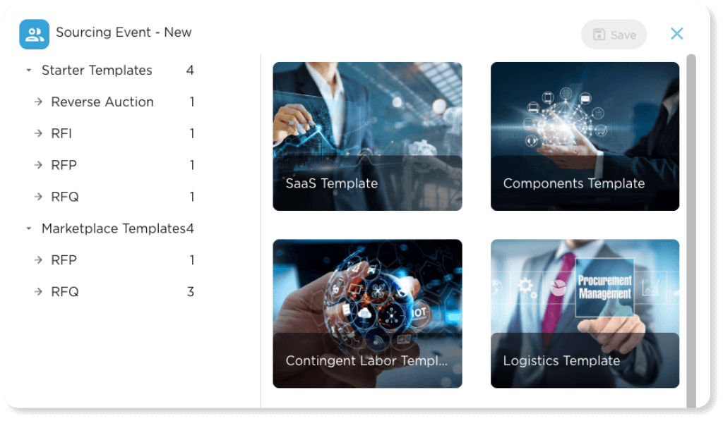 Launch sourcing events up to 75% faster using pre-built templates, one-click cloning, and dynamic workflows.