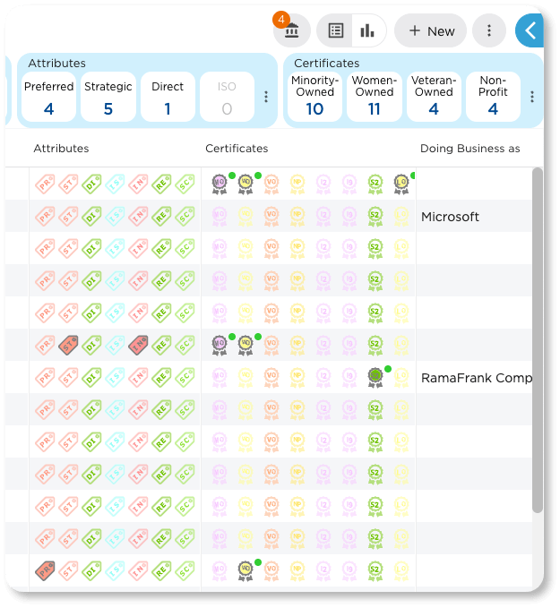 Users can manage a wide range of supplier data including company profiles, contact info, compliance documentation (e.g., W-9s, insurance, DEI certifications), risk scores, contract history, and performance metrics. The platform also supports segmentation by region, category, or business unit for more targeted supplier strategies.