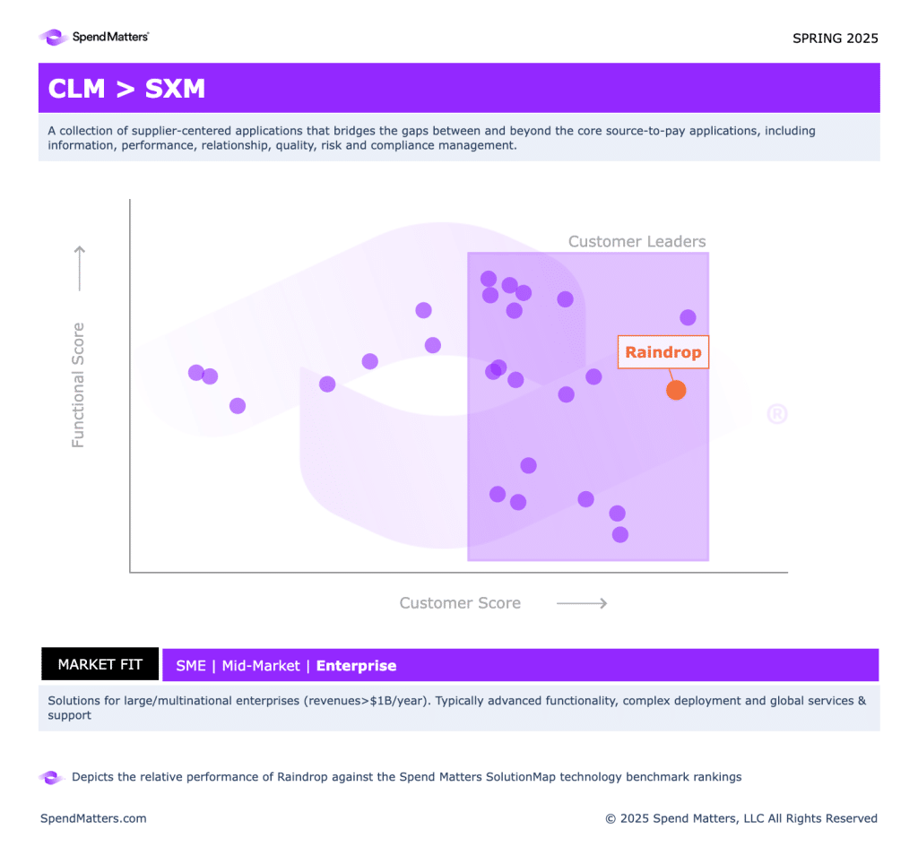 Spend Matters recognizes Raindrop as SolutionMap Validated in Spring 2025 for Contract Lifecycle Management (CLM)